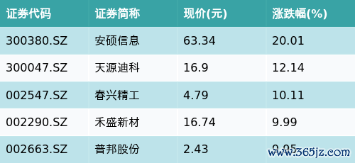 截至收盘线上股票配资网站,互联网金融主题涨跌幅最高的五只股票为:安硕信息(300380.SZ)、天源迪科(300047.SZ)、春兴精工(002547.SZ)、禾盛新材(002290.SZ)与普邦股份(002663.SZ)。详情见下表: